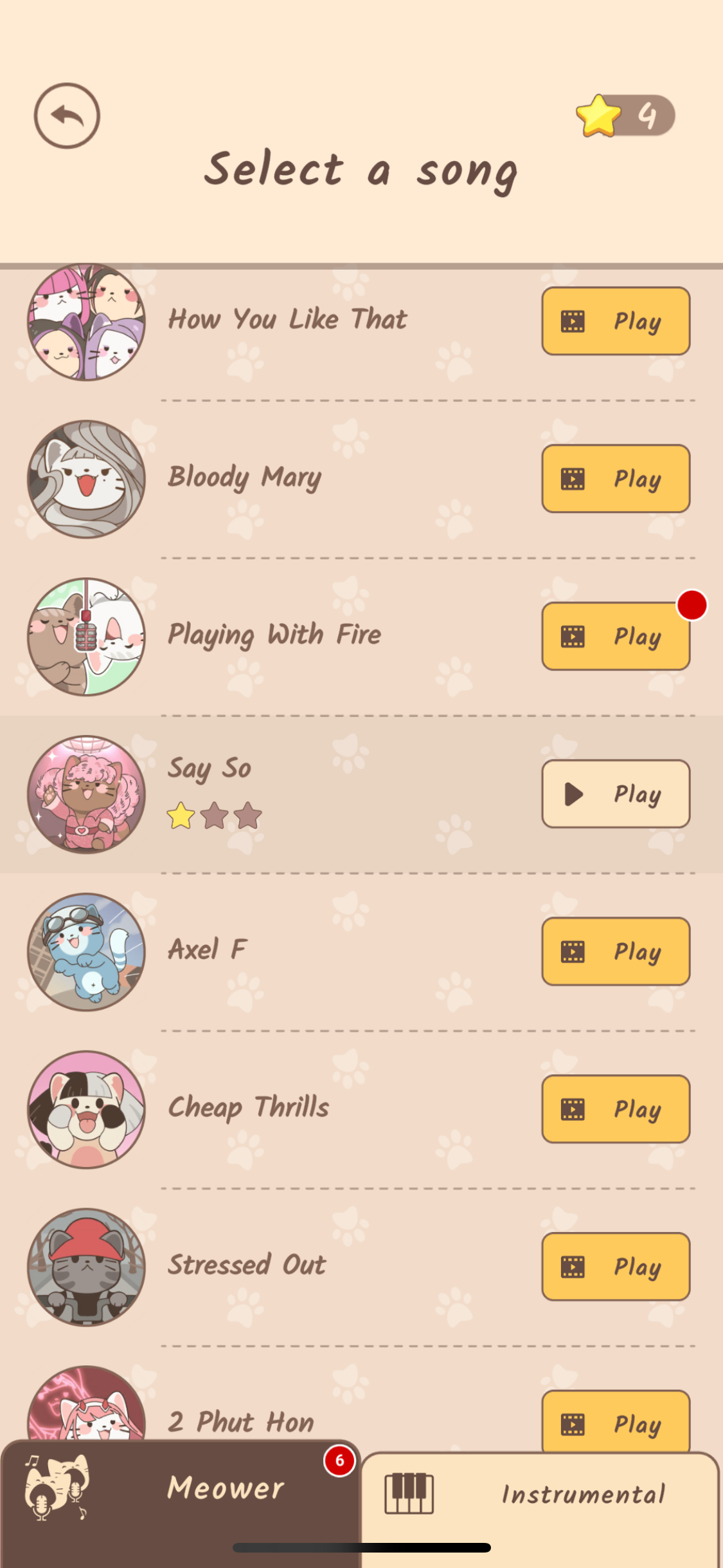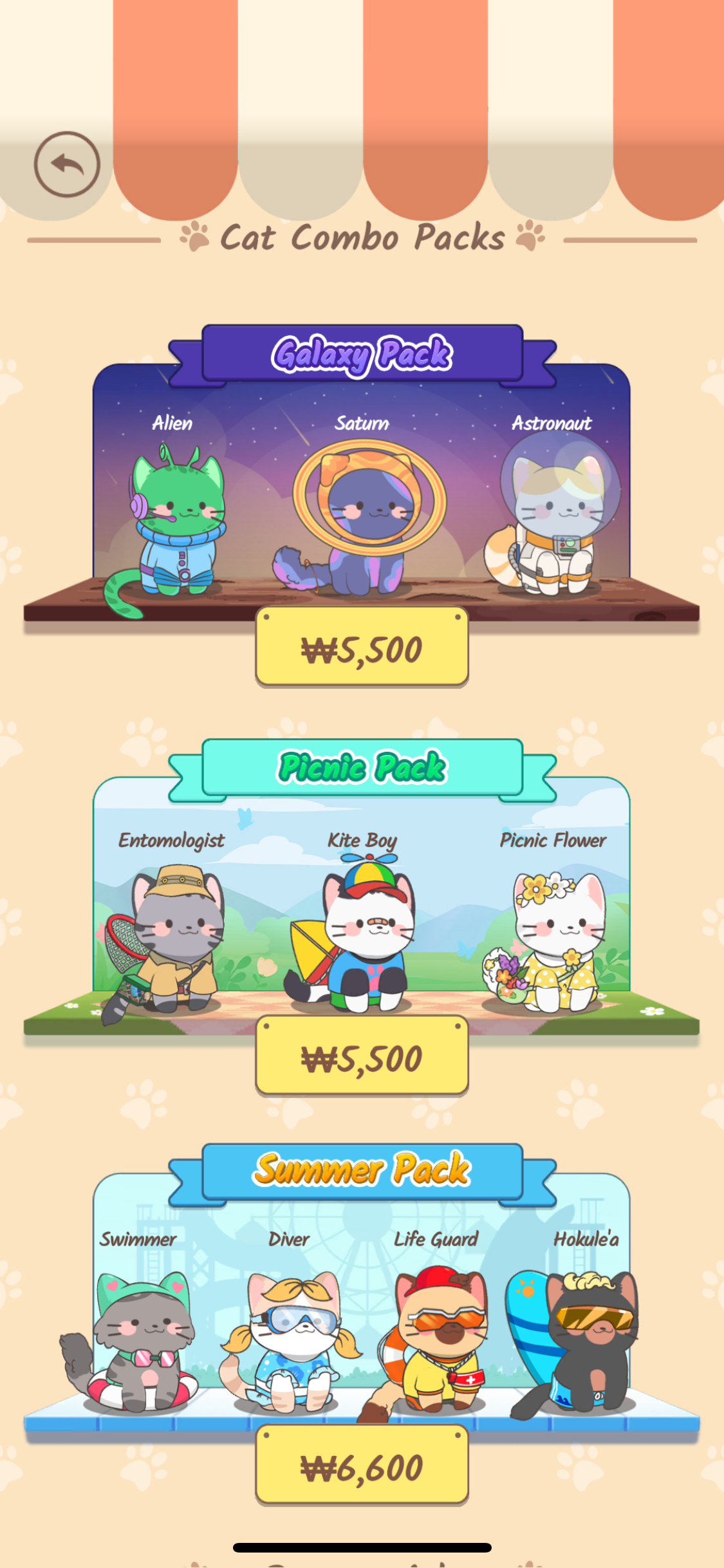 그리고 고양이 선택도 가능한데 광고를 보면 자물쇠가 풀리는 것 같습니다. 아래의 메뉴를 보면 고양이에게 줄 수 있는 음식도 고를 수 있는 탭으로 보입니다.
