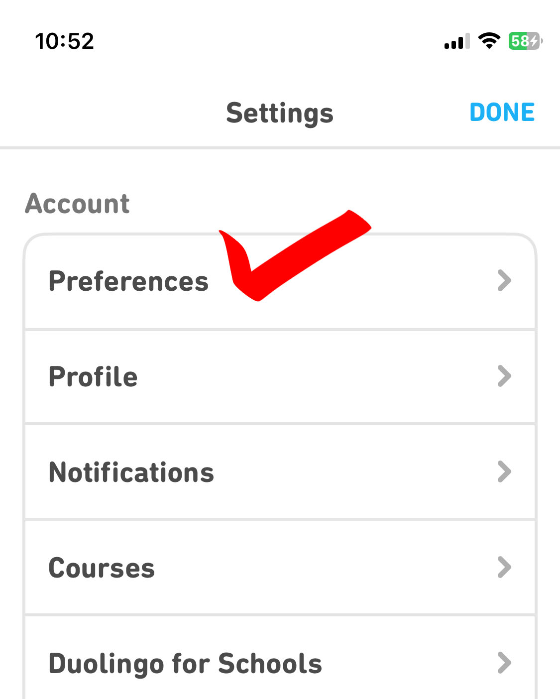 2. Settings (세팅) 페이지가 나타나면 제일 위쪽에 있는 Preferences를 선택하여 클릭합니다.