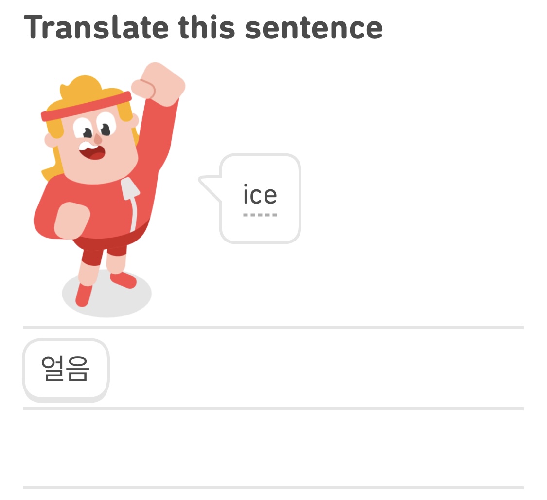 저는 한국인이라서 굳이 한국어 학습을 할 필요는 없지만 외국인의 입장에서 한국어를 배우는 입장은 어떨까 궁금하기도 해서 이 코스를 해보기도 했고 한국 시간 기준 매주 일요일 19시 (저녁 7시)는 한 주 동안의 리그가 끝나는 날인데 참여 리그에서 강등 당하지 않기 위해 저에게는 비교적 쉬운 한국어 코스를 학습해 xp를 빨리 올리는 전략을 펼치기도 한답니다.