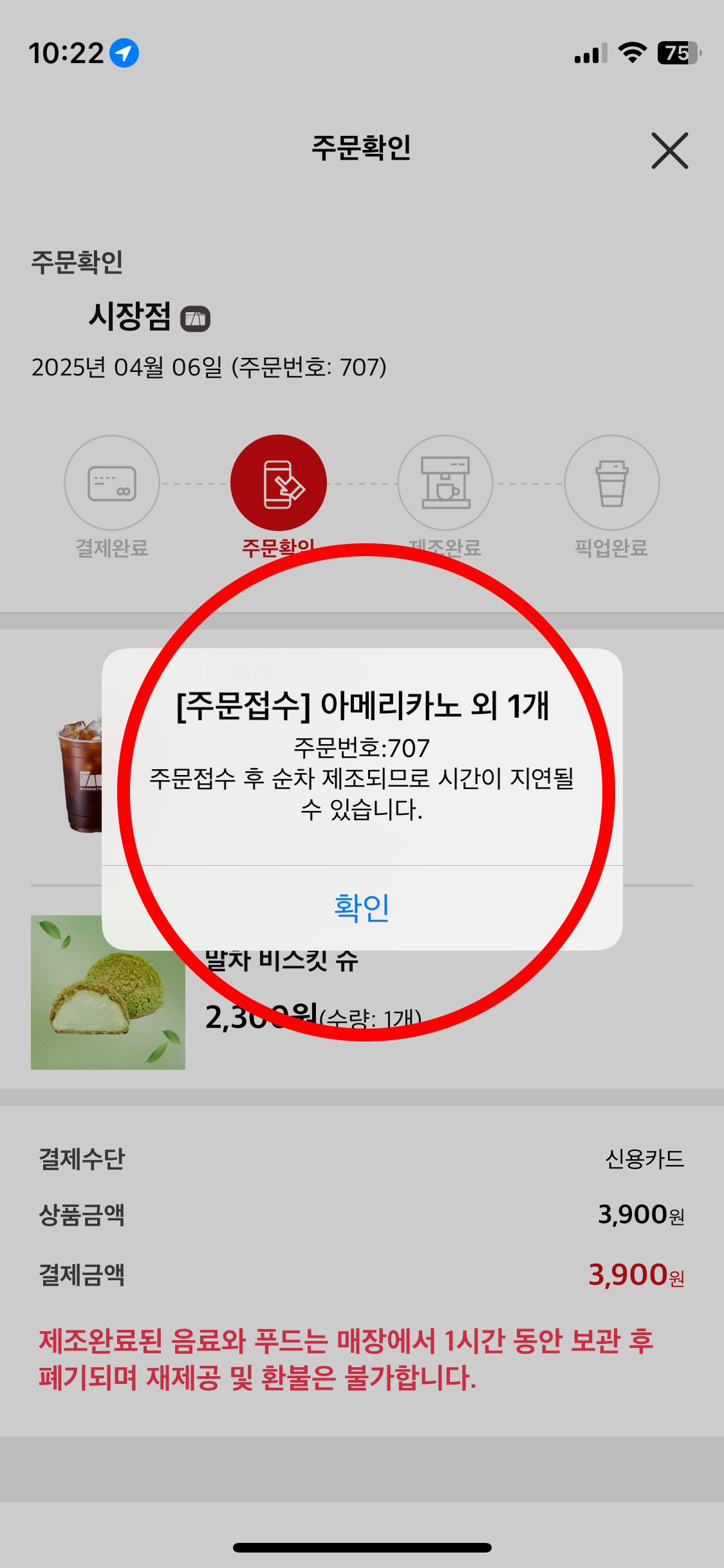 12. 이제 주문한 매장을 방문해 준비된 음료를 픽업 (pick up)하면 됩니다.