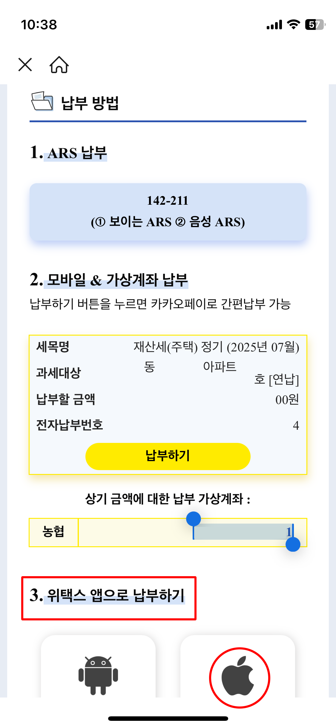 저는 위택스 앱으로 납부하기로 하고 아이폰을 사용하기 때문에 아이폰의 애플 로고를 선택했습니다. 링크가 있어서, 위택스 앱을 다운로드 할 수 있게 앱스토어로 이동되었습니다.
