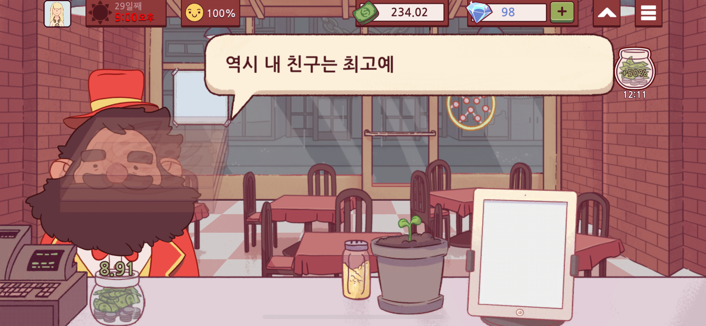 저보고 친구라고 해줬습니다. 털보가 어려울 때 피자를 줌으로써 털보의 친구 신분이 되었습니다. 돈도 주고 갔습니다. 흐믓합니다.