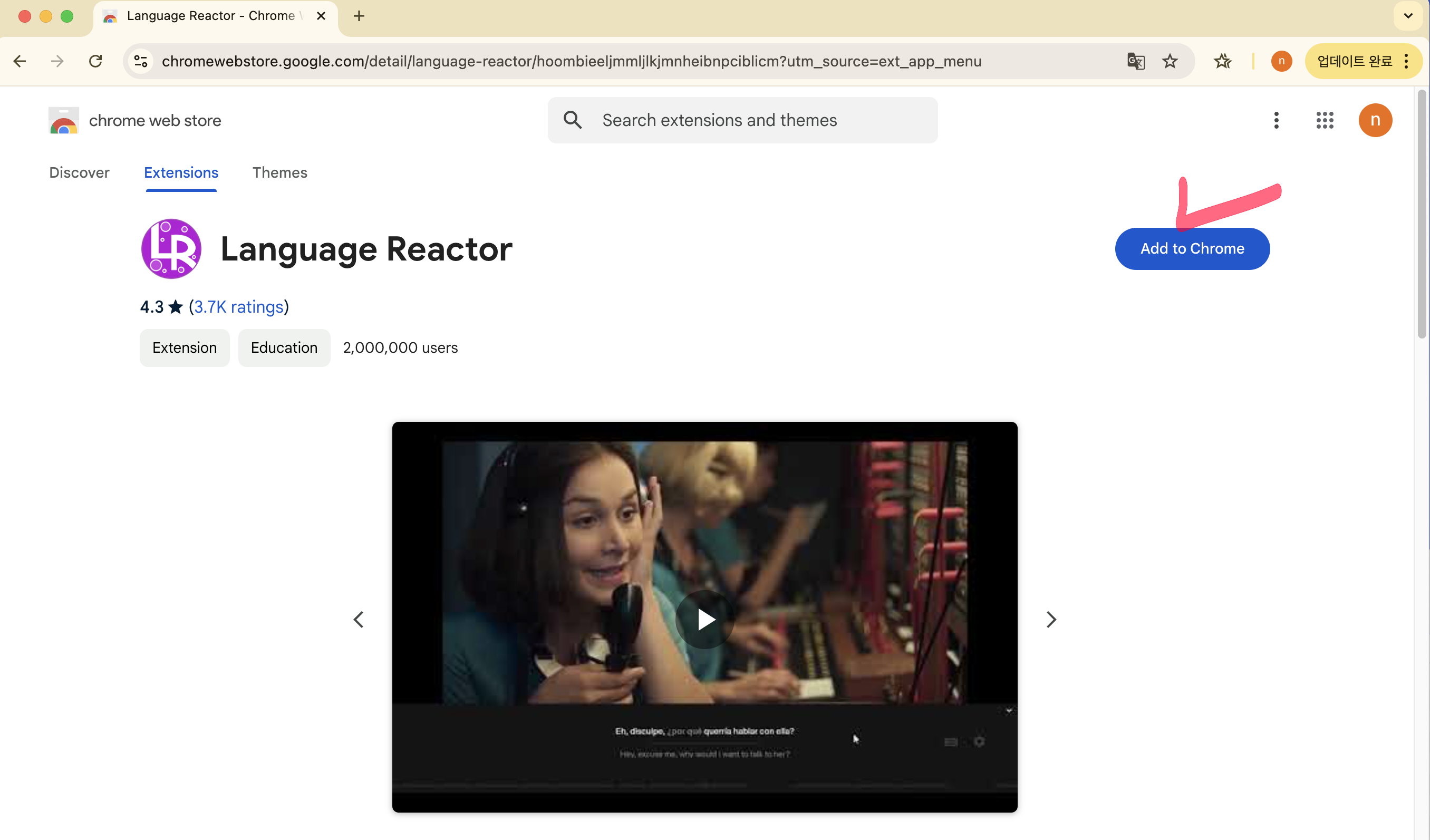 구글 확장 프로그램 language reactor 설치 방법