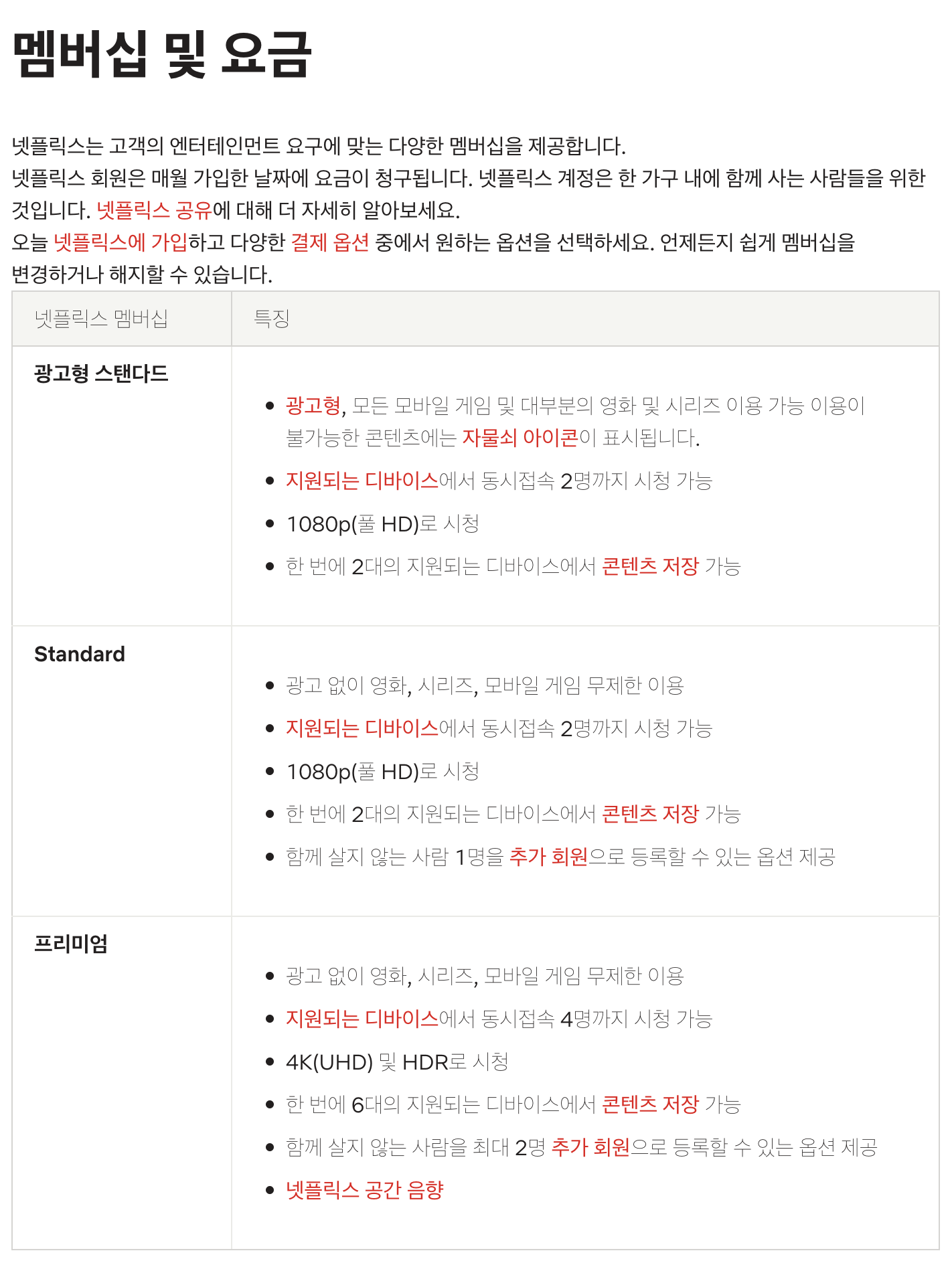넷플릭스 구독, 공유 플랜 종류 소개 (가격, 동시접속, 추가 회원) 비교