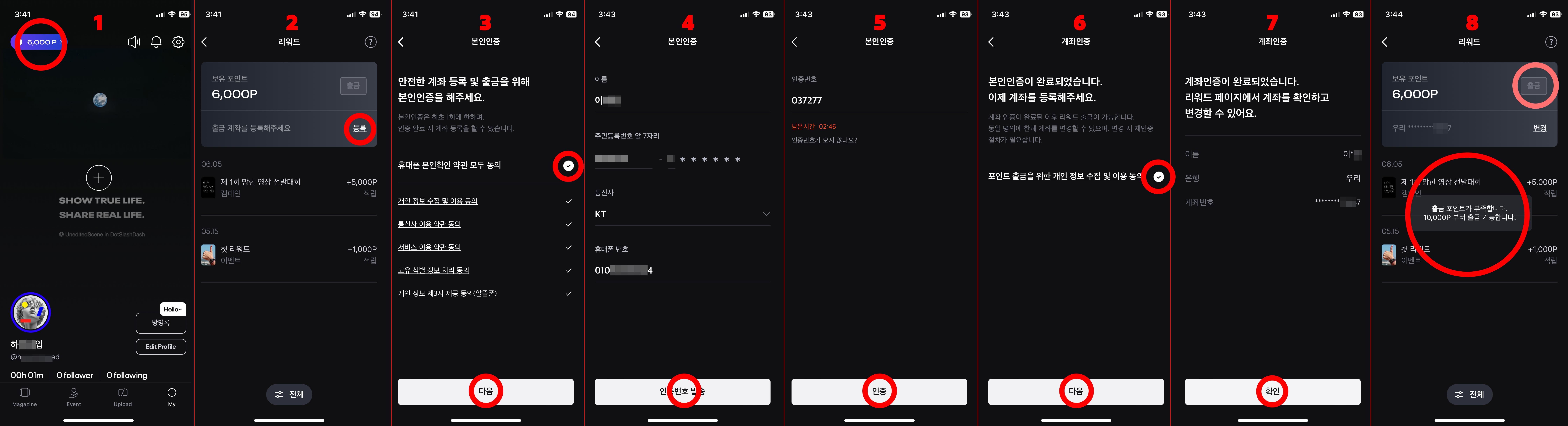위 이미지는 계좌를 등록하는 단계별 과정입니다. 아주 쉽습니다. 반드시 4,000포인트를 더 모아서 현금화하고 싶습니다.