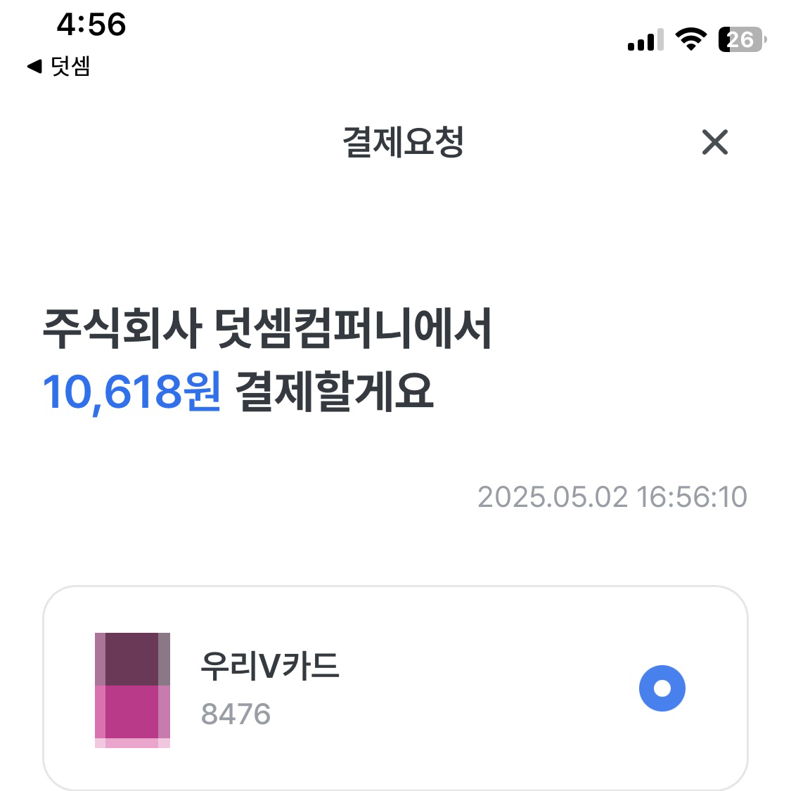 이용료 결제는 신용카드, 체크카드, 네이버페이, 카카오페이 중에 선택 가능합니다. 저는 체크카드 결제로 은행 앱을 통해 바로 결제를 진행했습니다.