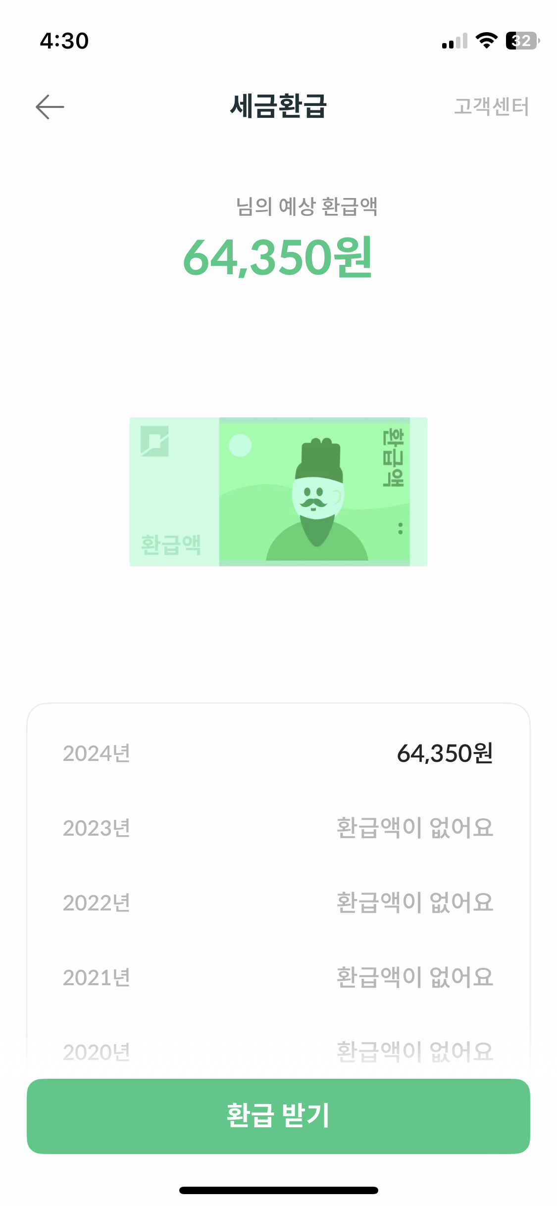간단한 본인 인증 절차를 거치면, 이렇게 예상 환급 금액이 나타납니다.