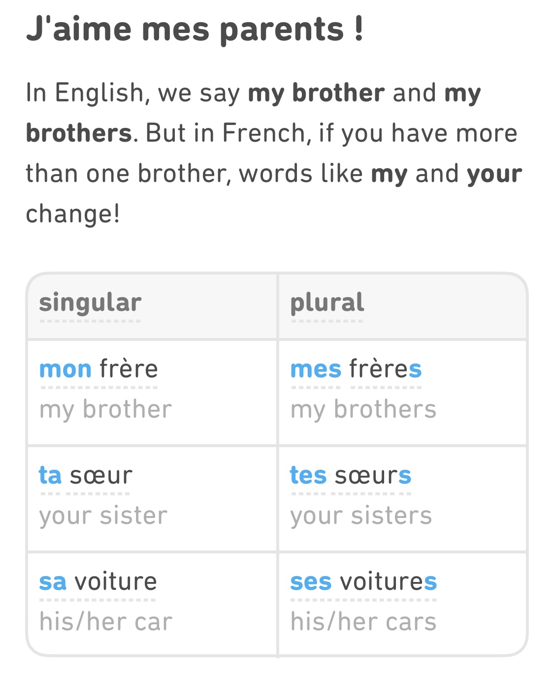 듀오링고 무료앱으로 프랑스어 공부 : 복수 명사를 꾸미는 복수 형용사