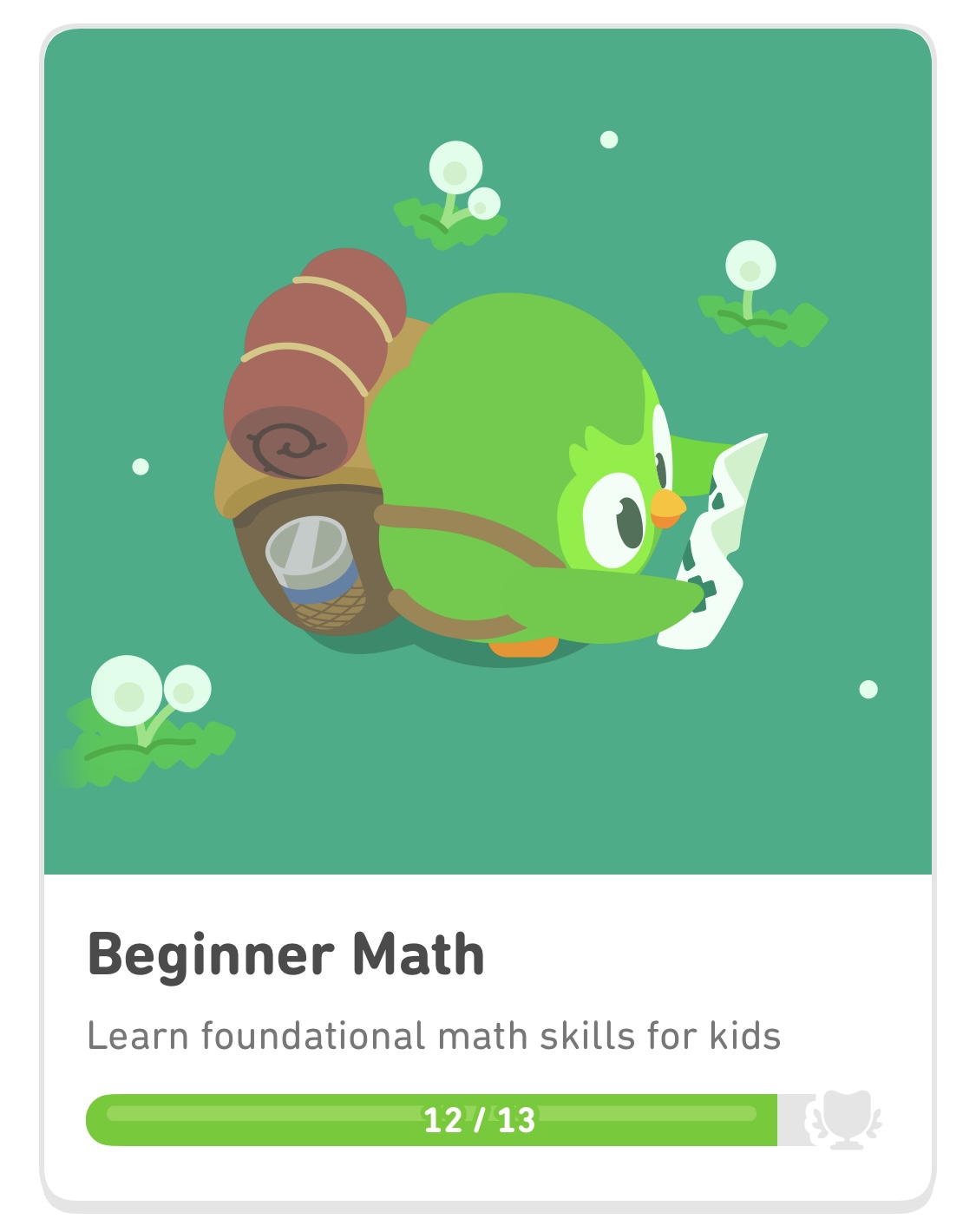 듀오링고 수학 Beginner Math를 완료했습니다. 어린이를 위한 수학의 기초를 배우는 과정이었지만 그리 만만하지는 않았습니다. 귀찮은 계산 문제가 많았기 때문입니다. 어쨌든 홀가분한 마음과 함께 다음 섹션을 어떨가 기대가 되었습니다.