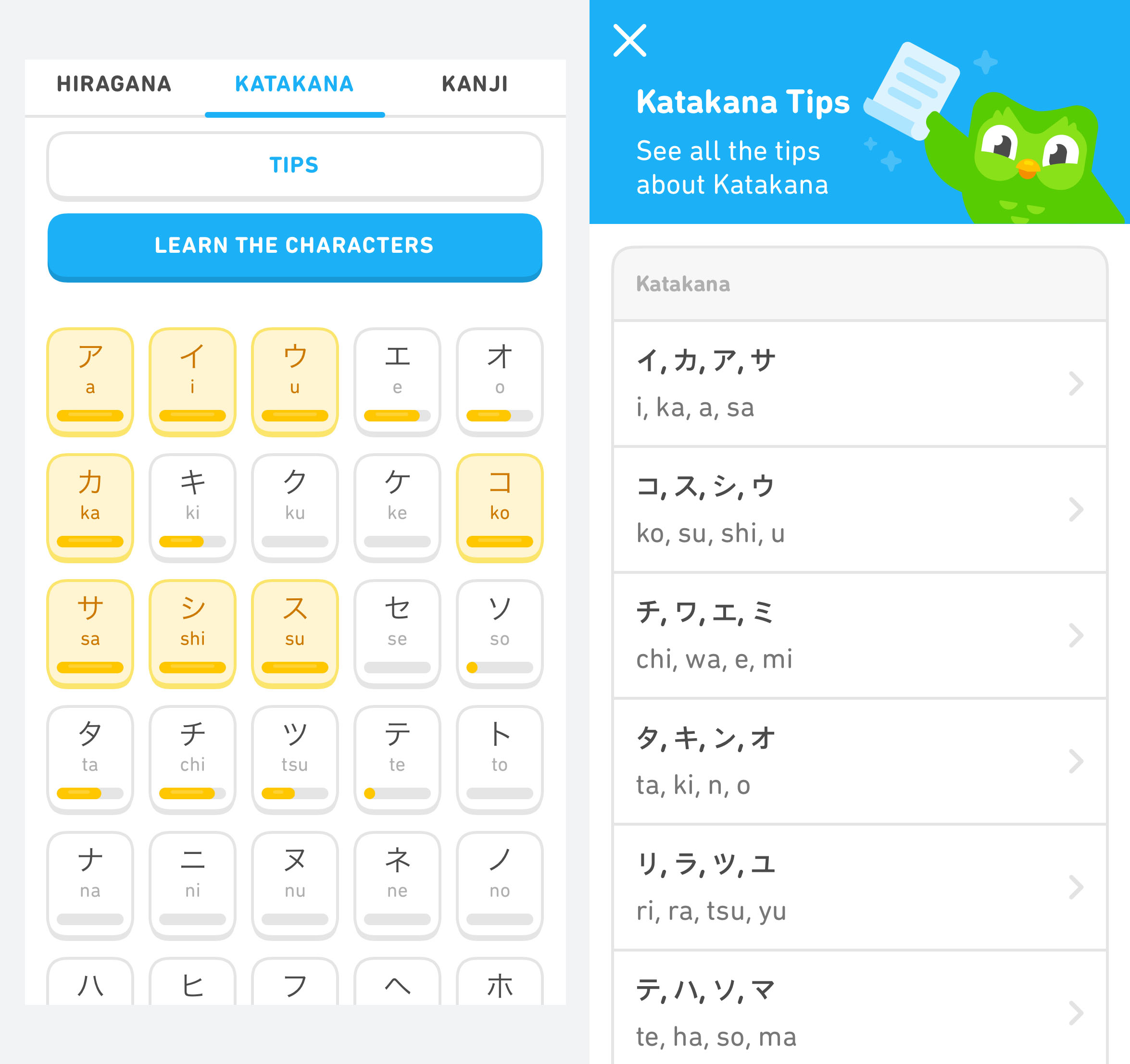 듀오링고 앱으로 일본어 배우기 : 카타카나
