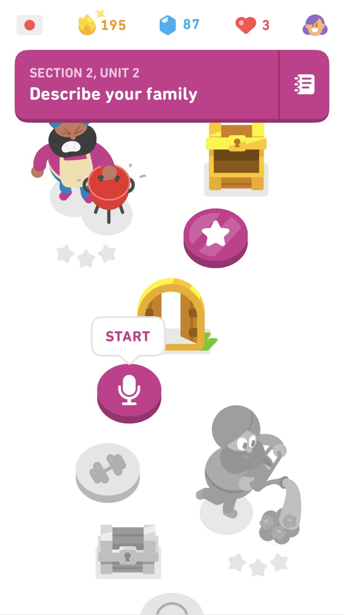 듀오링고 일본어 학습 모드에서는 섹션2 유닛2에서 카타카나 학습이 시작되었습니다. 학습 맵을 보면 문이 열린 그림이 있습니다. 카타카나 학습 25개 레슨을 끝마쳐야만 문이 열리고 다음 코스로 넘어갈 수 있었답니다. 반복에 반복을 더해 학습량이 정말 많은 것 같습니다.