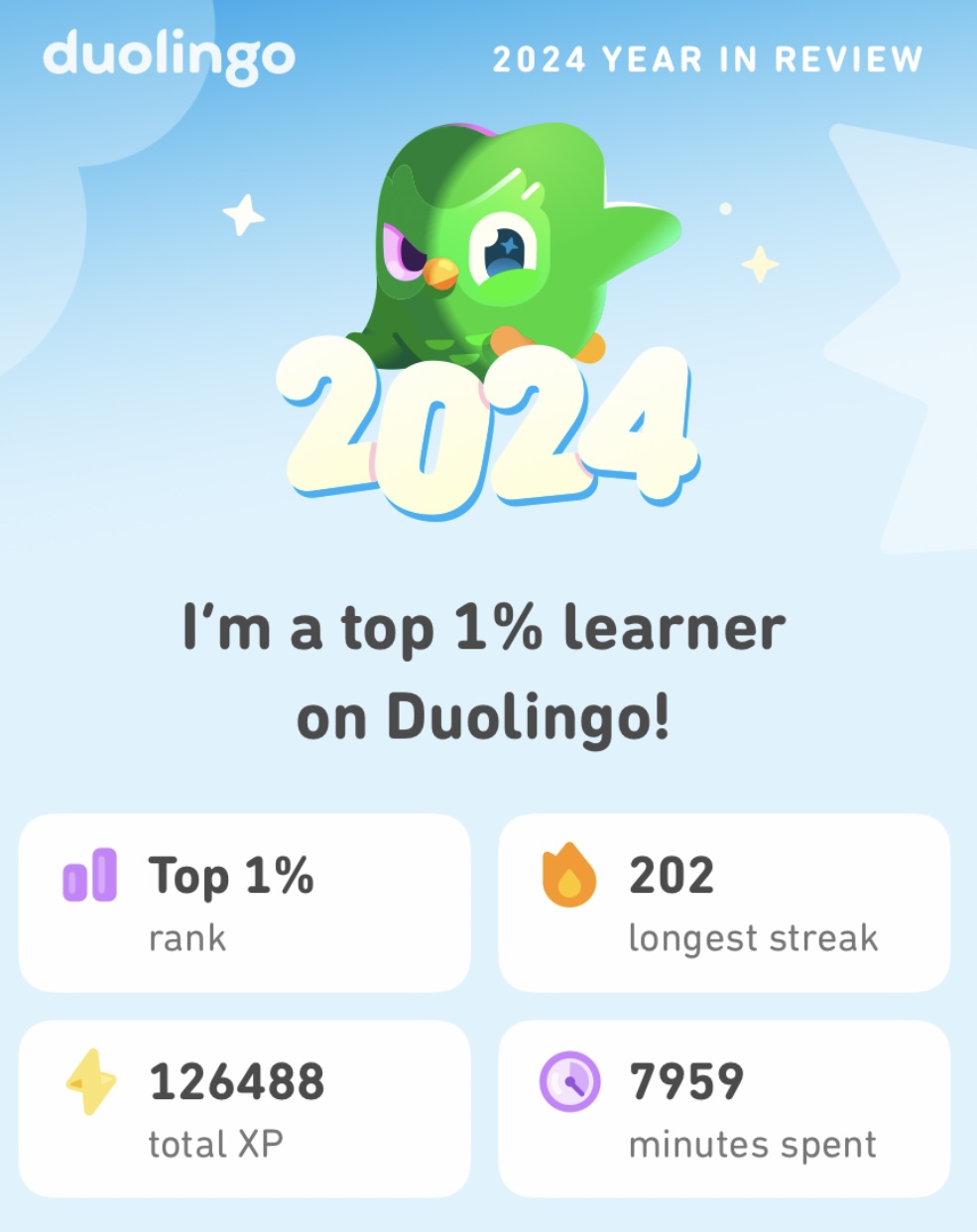 듀오링고 2024 리뷰 : top 1% learner feat.성적표