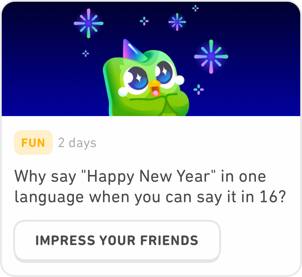 듀오링고 : happy new year 16개국의 다른 나라 언어로 새해 인사 하는 방법
