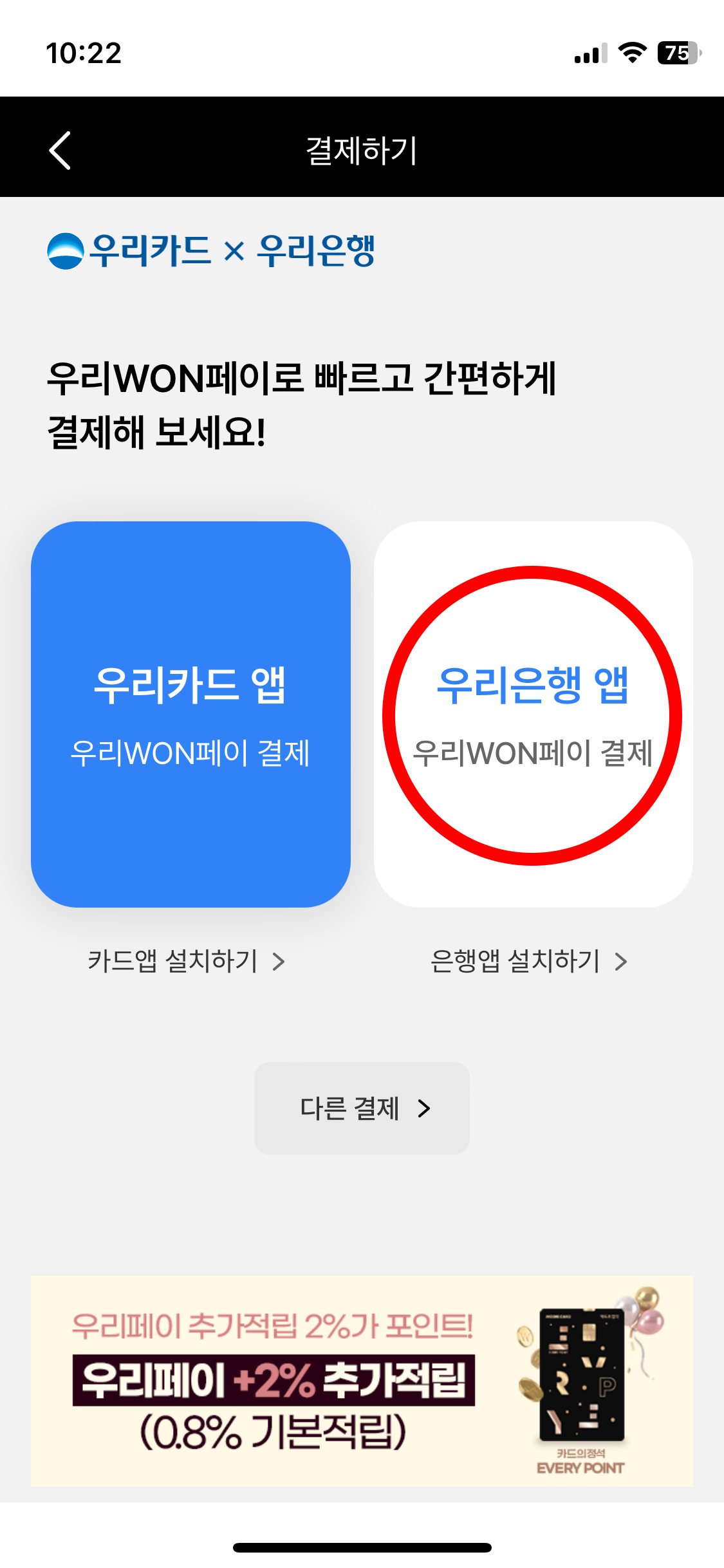 10. 우리은행 앱으로 연결하여 은행 앱 결제 비밀 번호만 클릭 후 스마트폰으로 간단히 결제를 진행했습니다.