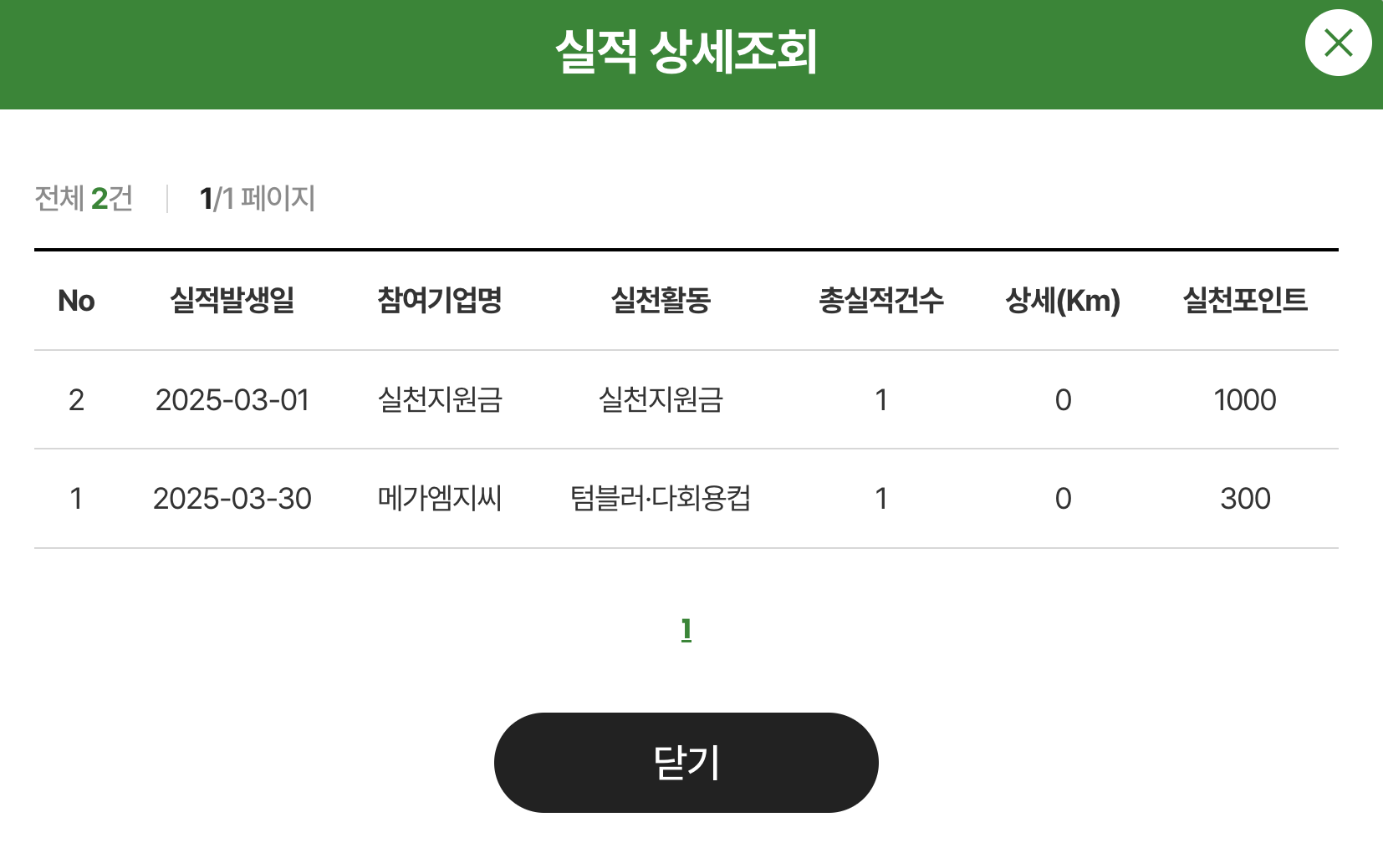 3월에 실천한 건 수들을 집계해 다음달인 4월 말일에 계좌로 포인트를 입금해주는군요.