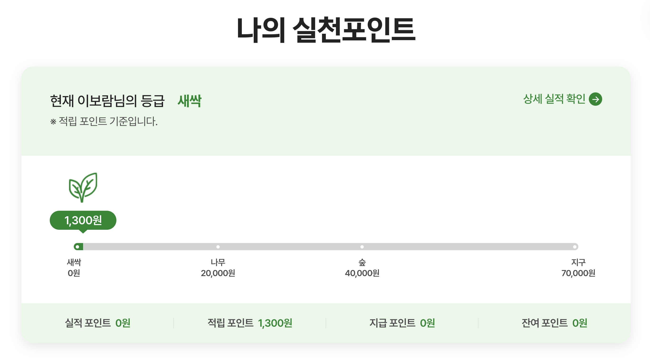 무려 1,300원이나 되어 있어서 탄소중립포인트 홈페이지에 로그인을 하고 내역을 확인해봤습니다.