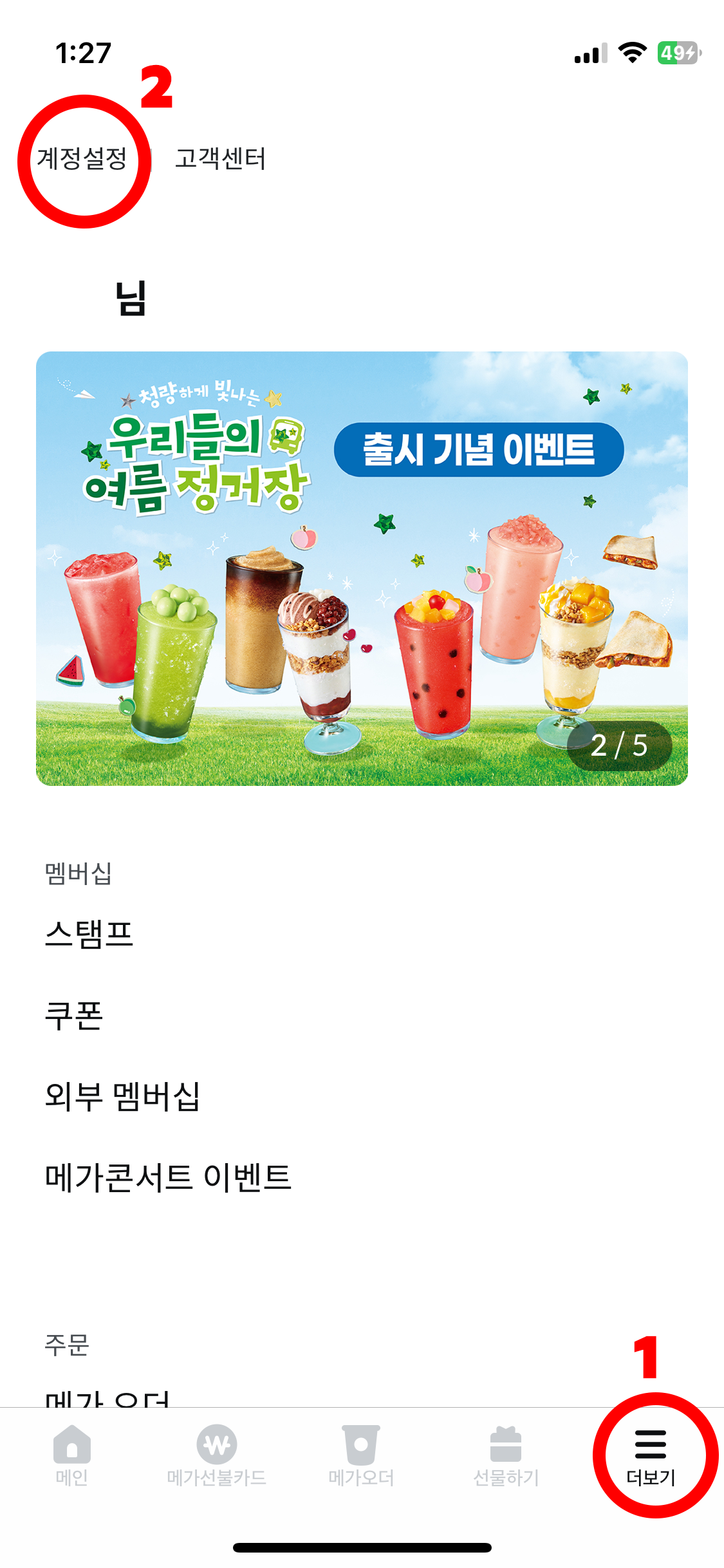 첫째 메가커피 앱에 본인의 전화번호가 등록되어 있어야 하고