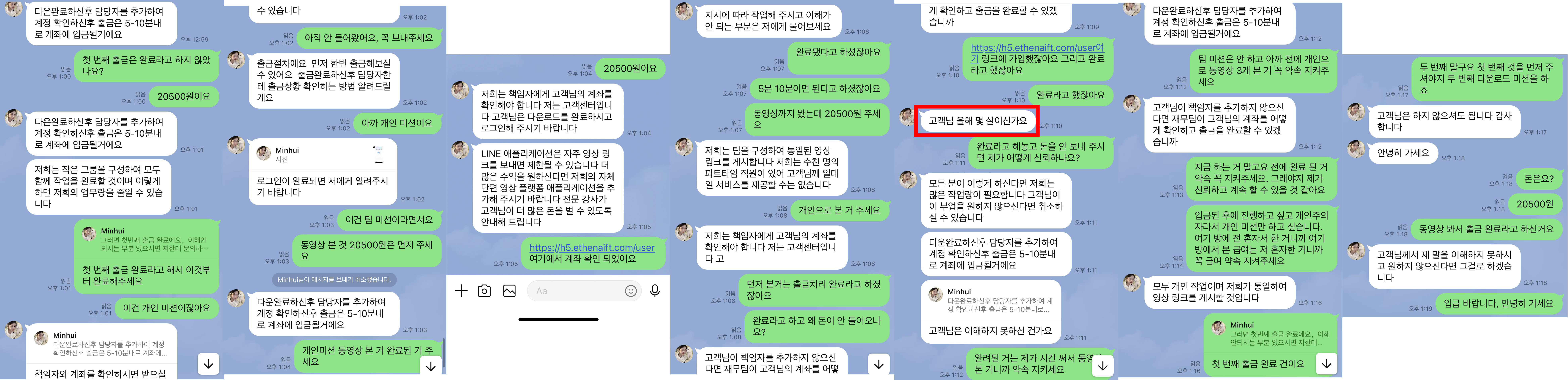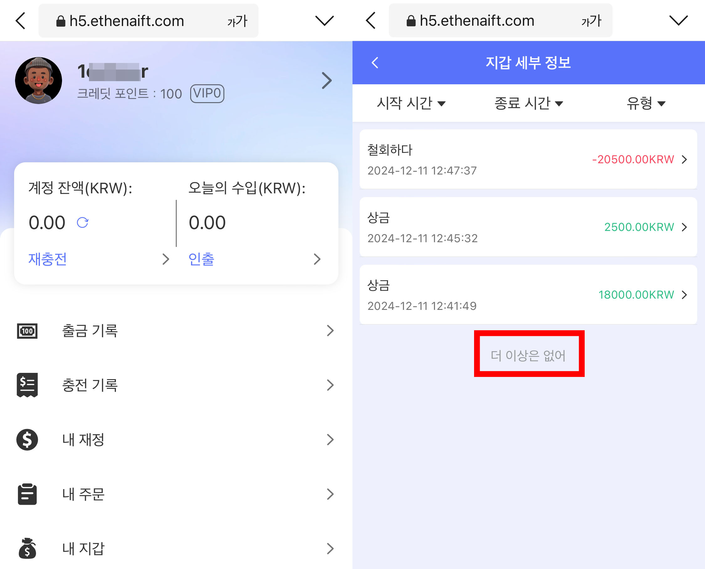 * 그나저나 ethenaif 사이트에 가입은 했는데 탈퇴 버튼이 없습니다. 계좌 등록해놔서 약간 찝찝한데요. 전화 번호 등록은 해놓지 않았습니다. 라인 메신저로 상담하는 사람의 말투는 번역기를 쓴 듯하고 이 사이트 역시도 번역기를 돌렸는지 '더 이상은 없어'라니 웃깁니다. 다른 나라의 소행으로 추측됩니다. 아마도 가까운 나라일 것도 같습니다. 위 화면은 유튜브 동영상을 보고 주기로 했던 상금을 출금 신청을 해서 그 결과가 나타난 모습입니다. 저렇게까지 했는데 이만하면 돈을 보내줘야지 또 앱을 설치하라니 말이 되지 않습니다.