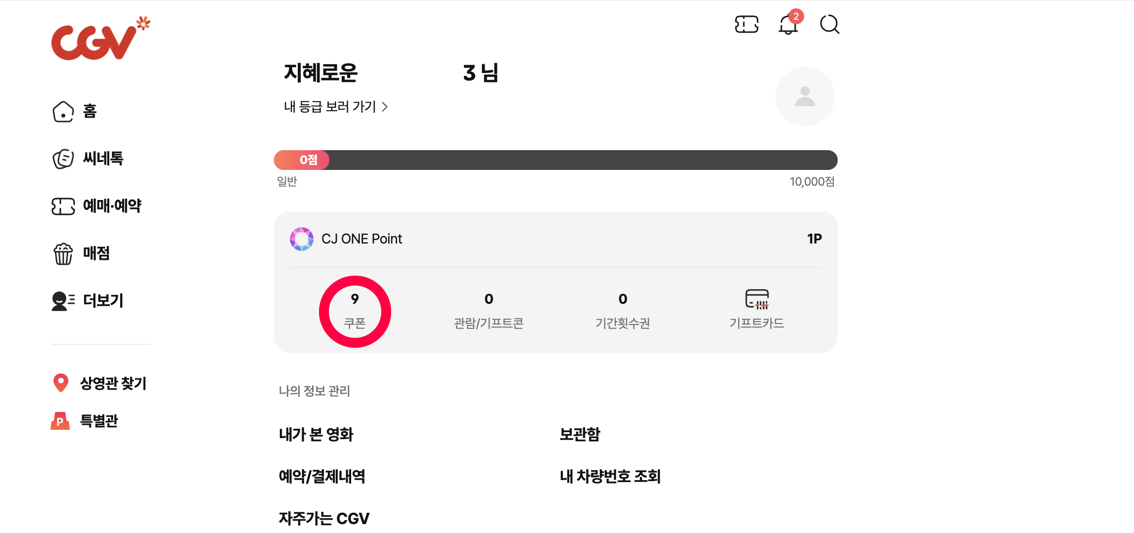 CGV 홈페이지에서 쿠폰 확인하는 방법
