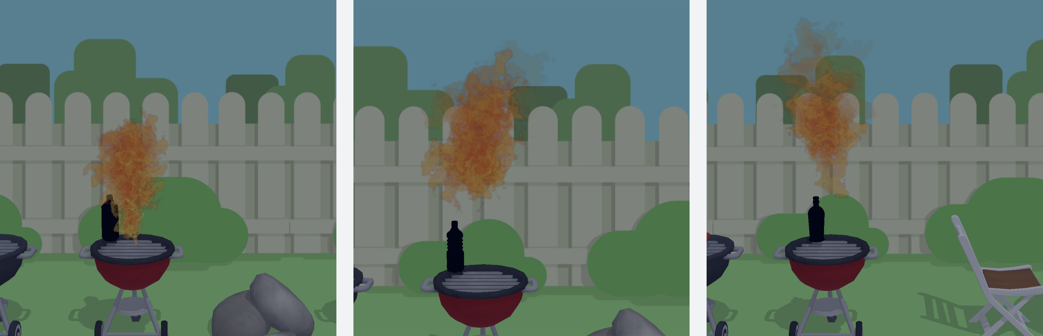저는 보틀 플립 3D 게임을 즐기고 있는 유저입니다. 위의 3개의 이미지는 각각 제가 게임에서 게임 오버된 장면입니다. 보틀 플립은 처음에 방 안에서 플레이를 하게 되는데 게임을 계속 진행하다 보면 야외 배경이 나오기도 합니다. 바비큐 장치에서 불이 한 번씩 피어 오르는데 우리의 플레이어인 보틀이 불에 닿으면 새까맣게 타면서 게임이 종료되니 주의 해야합니다. 위 3개의 게임에는 각각 다른 종류의 보틀로 플레이를 했는데 모두 새까맣게 타서 구분이 잘 되지는 않지만 형태가 다른 것을 알아채실 수 있으실 겁니다.