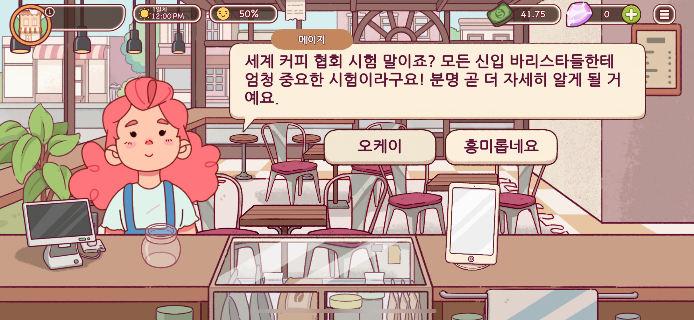 메이지는 떠나면서 세계 커피 협회 시험에 대한 정보를 주고 갑니다. 게임 플레이 하는 중에 플레이어인 저도 시험을 보는 이벤트가 있을지 궁금합니다.