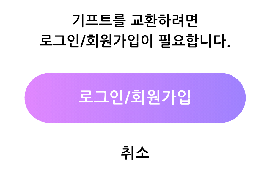 기프트를 교환하려면 로그인이나 회원가입을 해야 해서 조금 당황했습니다.