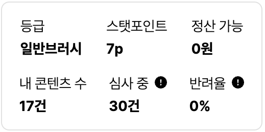 스탯 포인트가 차감되지 않기 위해서 활동도 열심히 해야하고 콘텐츠 심사에서 반려되지 않도록 콘텐츠를 잘 올려야 하겠습니다.