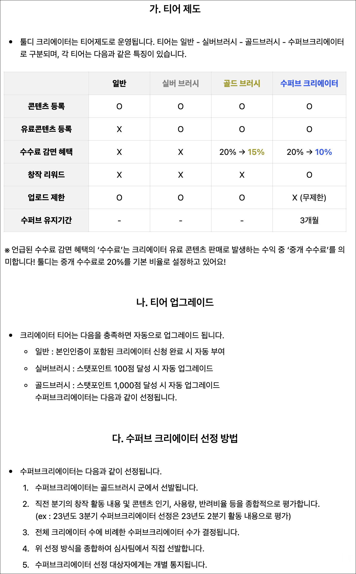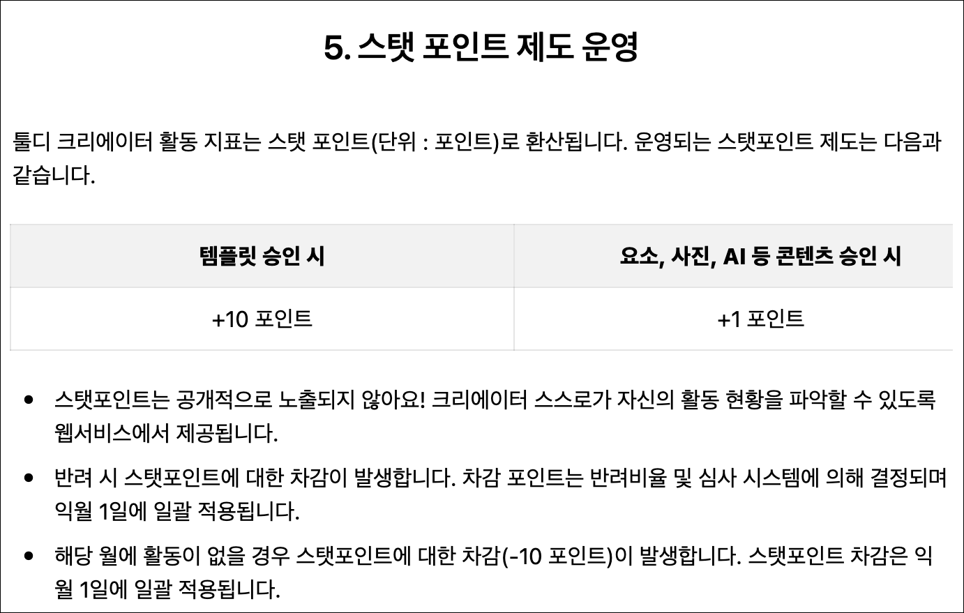 툴디 크리에이터 티어 제도와 스탯 포인트 제도