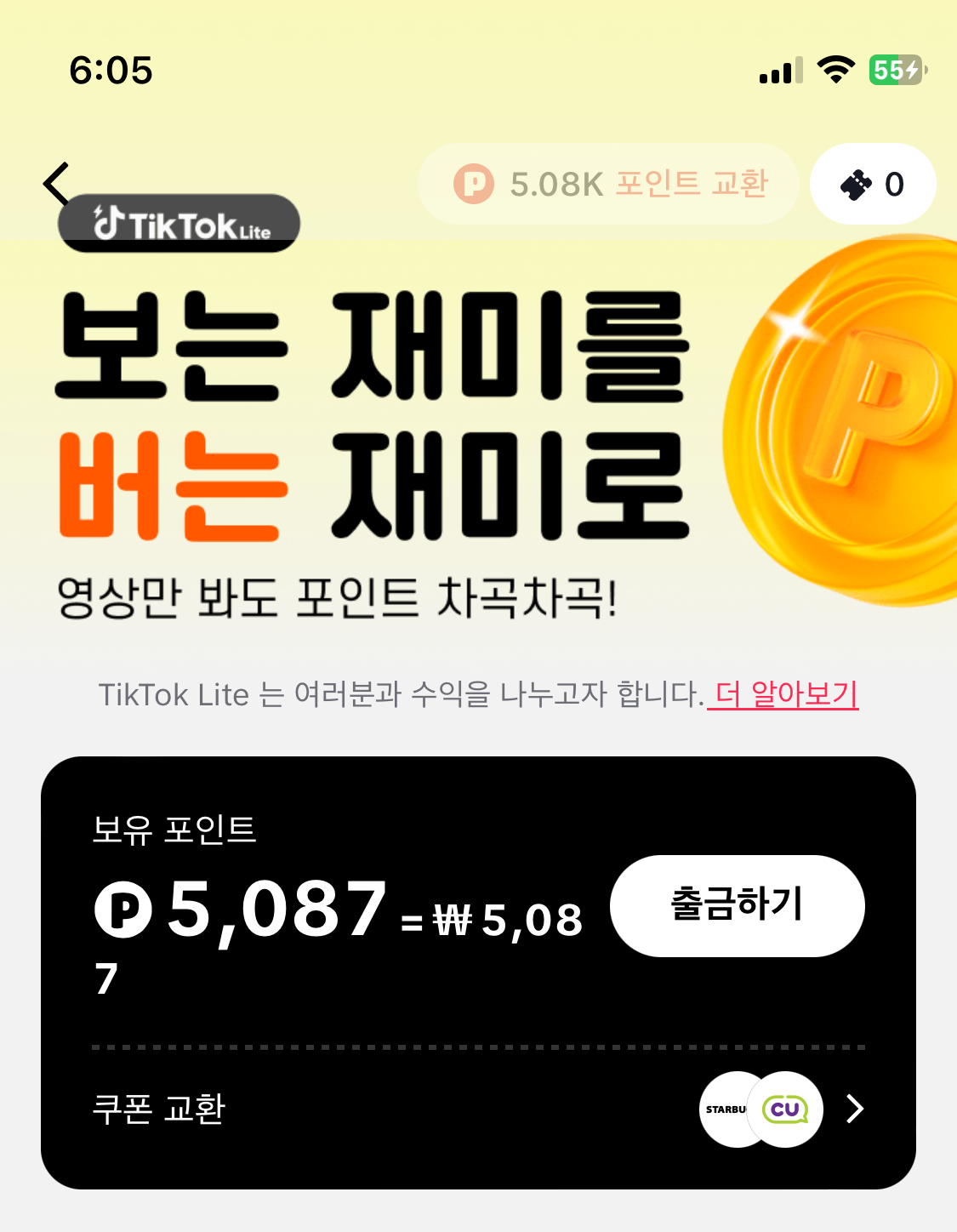 틱톡 라이트 TikTok Lite 포인트 출금 방법