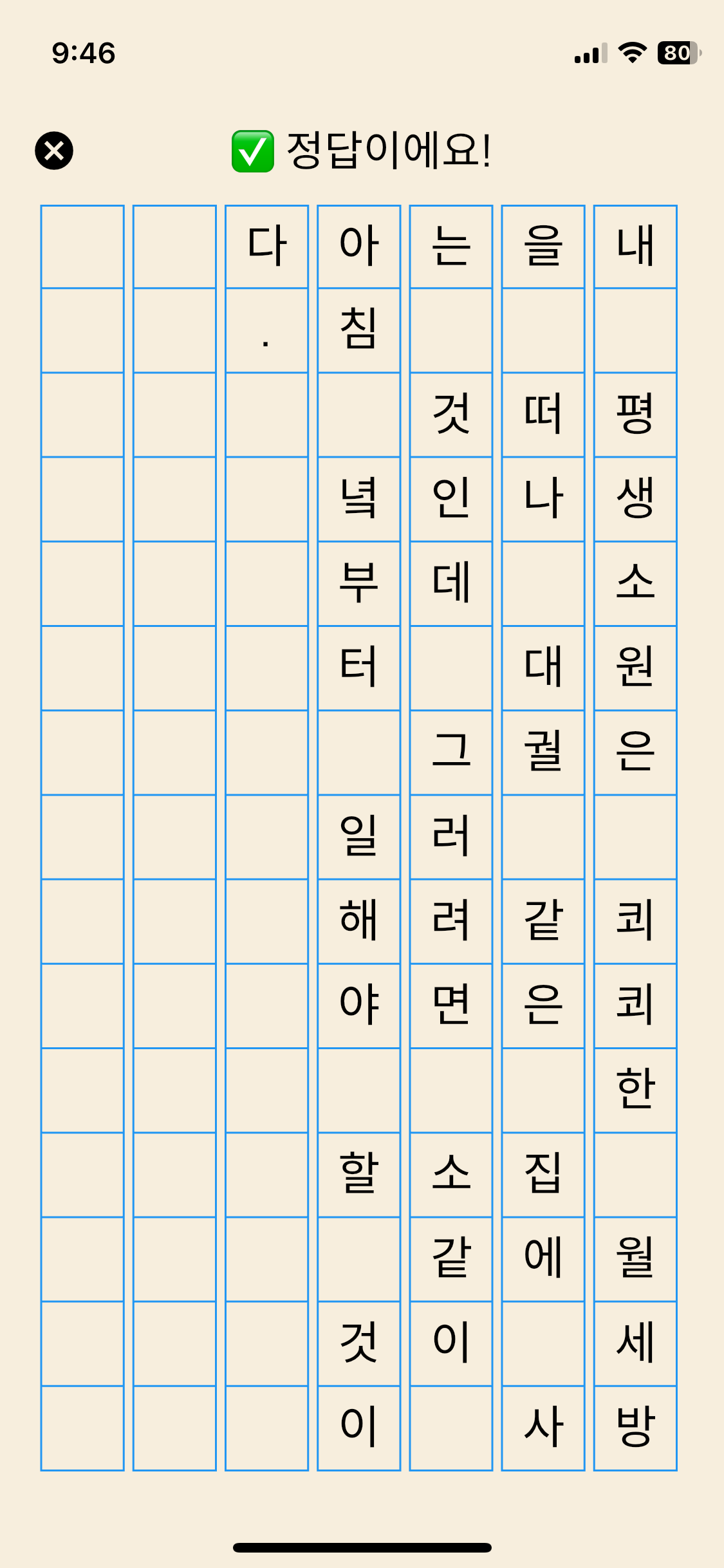 '한글 띄어쓰기' 게임은 맞춤법에 맞게 띄어쓰기를 하는 게임입니다.